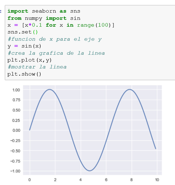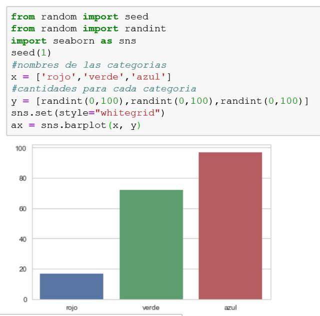 El mismo ejemplo se ve de este modo usando Seaborn. Es importante recalcar que no se omite la libreria de matplotlib.
