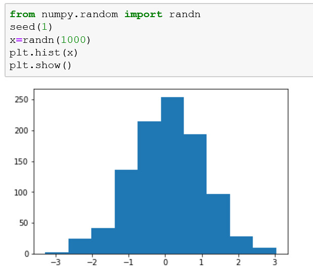 Se puede crear un diagrama de histograma llamando a la función hist() y pasando una lista o matriz que representa la muestra de datos.